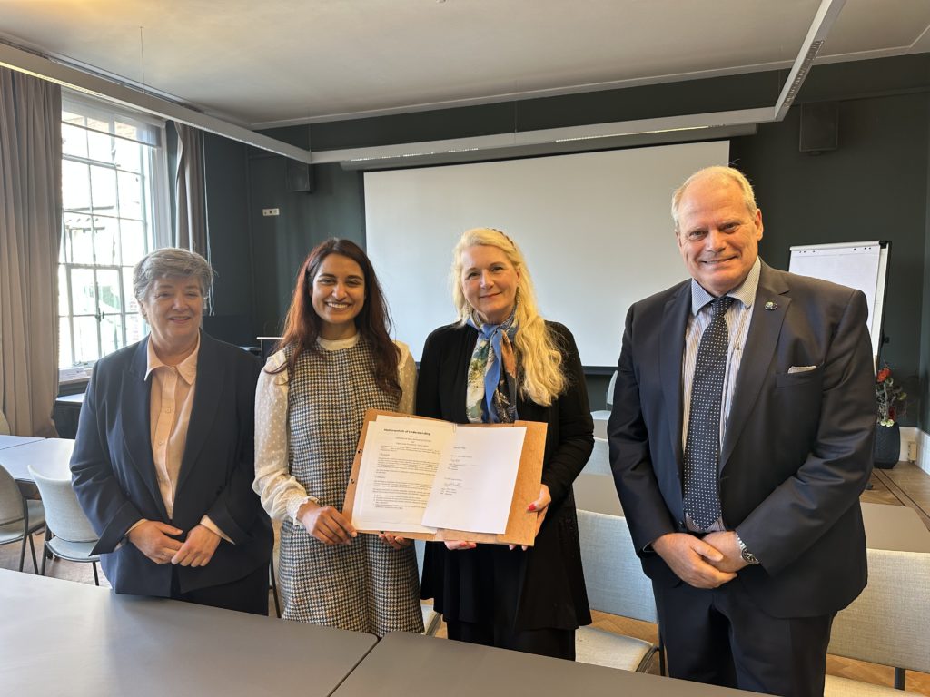 Left to right: Tanja Masson-Zwaan, OLF Director, Mehak Sarang, OLF  Director of Industry Integration, Pascale Ehrenfreund, COSPAR President, and Niklas Hedman, COSPAR General Counsel.